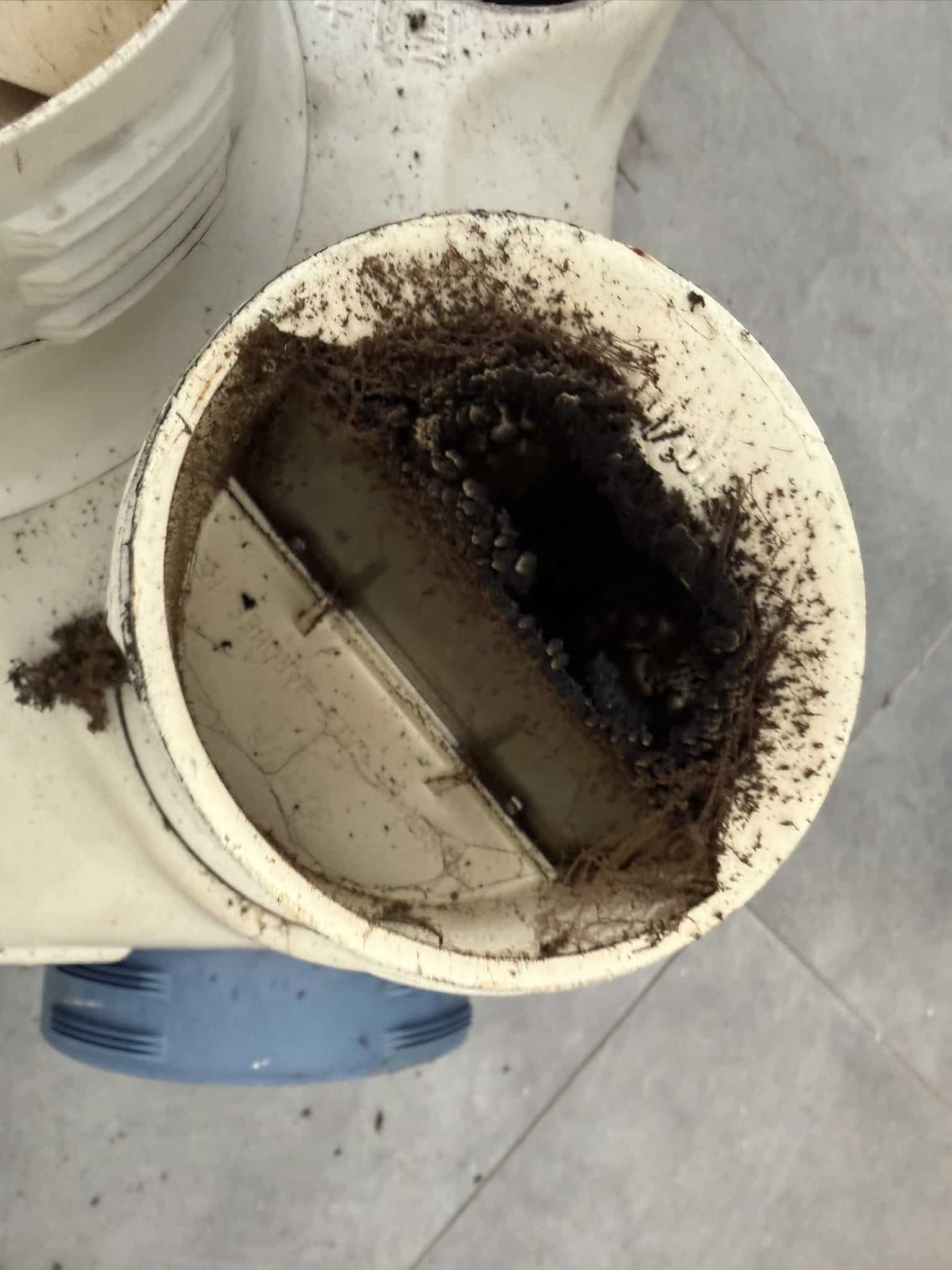 J'ai découvert sur place un tableau révélateur. L'accumulation de résidus dans le caisson et les conduits sautait aux yeux. Les composants en plastique demeuraient structurellement corrects mais présentaient un encrassement important, tandis qu'un flexible enroulé occupait une position inadaptée (ce qui compromettait gravement l'efficacité globale).